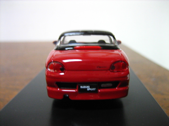 このモデル、今はなき東京・吉祥寺の模型専門店・『Wave be-J』で入手した限定品で、スズキ自動車系列のカスタマー、スズキスポーツカスタム仕様となっている。また、付属パーツでこのメタルトップのほか、オープンシーターにすることもできる。