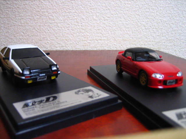 左・インターアライド「MODELER’S」 トヨタ・AE86 スプリンタートレノ GT-APEX 藤原拓海仕様(後期型) ハイテックツートーン