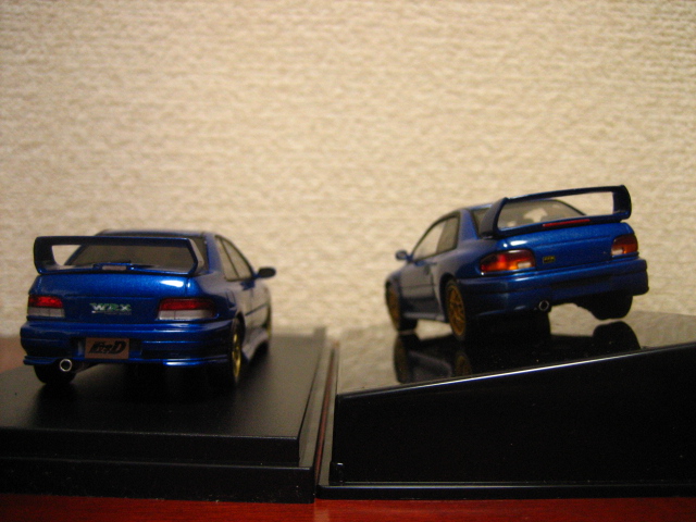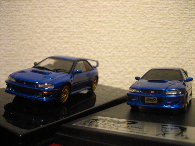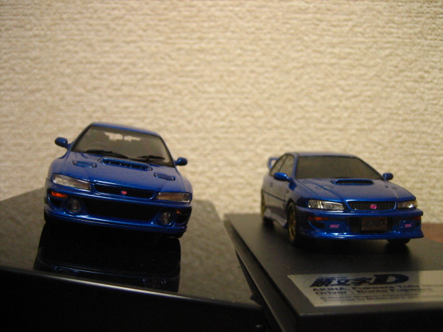 インターアライド「HiStory」より、GC8インプレッサWRX Sti VersionV type Rが2015年10月にリリースされ、アニメ版・アーケード版オフィシャルのソニックブルー・マイカ、Special Stage版のアークティック・シルバー、他ブラックマイカ、ピュアホワイトの5色が用意されるとのこと。その後インターアライド「MODELER’S」から文太仕様もリリースされている。