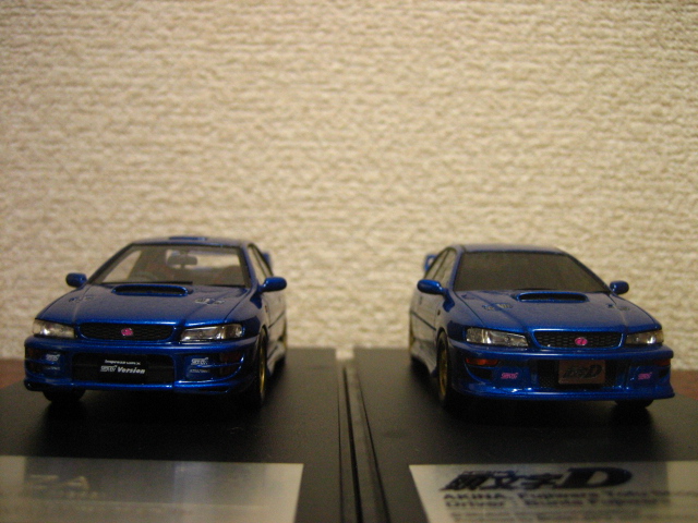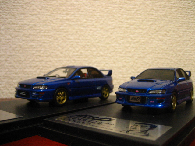 右・インターアライド「MODELER’S」スバル・GC8 インプレッサWRX type R Sti ver.V 藤原文太仕様 ソニックブルーマイカ