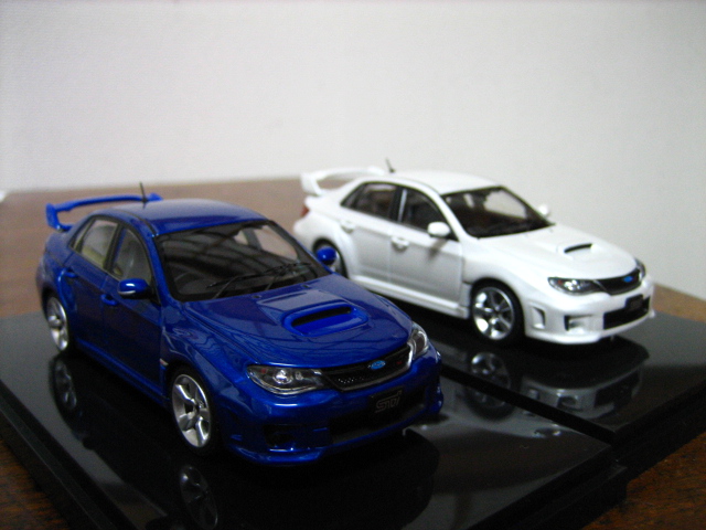 左・EBBRO スバル・GVB インプレッサWRX STI 4door WRブルー・マイカ