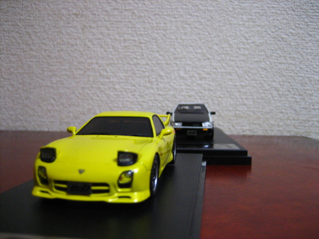 この渉スーパーチャージャー仕様、1/64ではインターアライド「MODELER’S」1/64SeriesでもVol.10にてこの啓介FDとの2台セットでリリースされている。バトル再現はもちろん、渉スーパーチャージャー仕様は拓海カーボンボンネット仕様と並べれば秋名湖での助言シーンの再現なんてのも可能だろう。