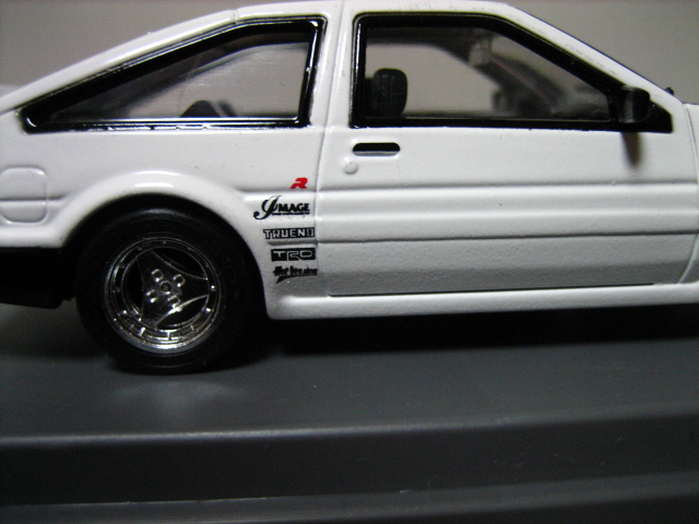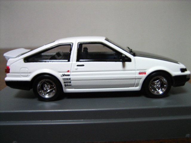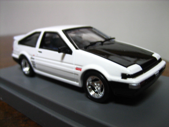 このモデル、実は1999年当時のもので、エポック社M-TECHからリリースされ、しかもあっという間に売り切れたためか今まで見たことなかったのだが、某中古ミニカーショップのサイトでこのモデルが売られていたのを見てすぐ飛びつき、入手した次第であった。また、過去ハチロク専門誌「AE86Club」の特別プレゼントでEBBROから1/43サイズでの土屋氏仕様のハチロクトレノが作られたと聞いたことがある。