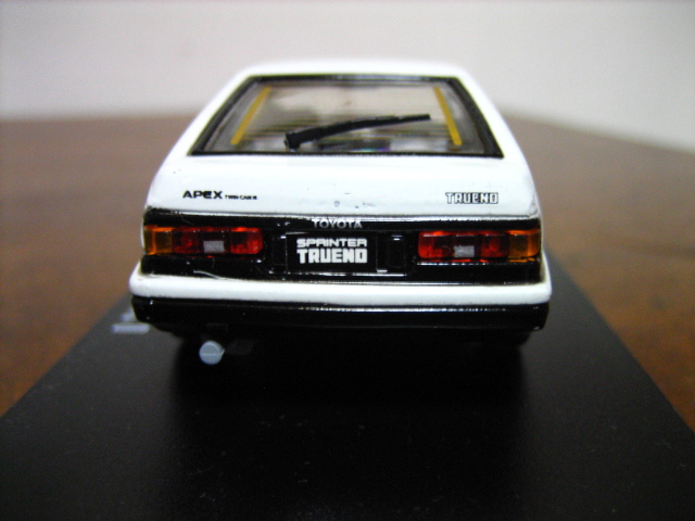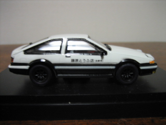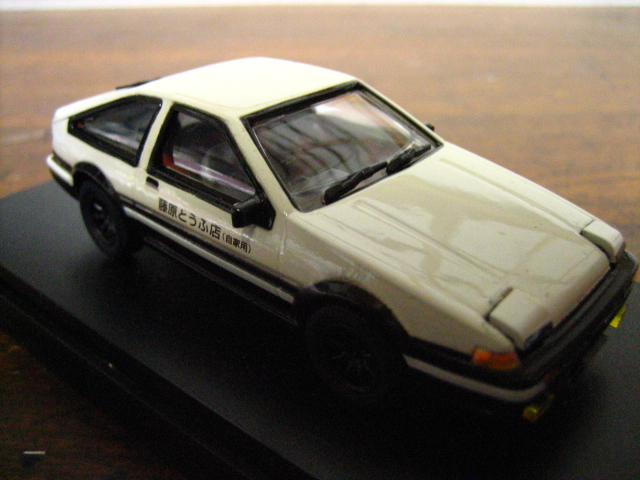 2004年1月に発売された『頭文字D SUPER COMPLETE DVD BOX』の特典で、添付された応募はがきで送って、それで送られてきたのがこの1/43トレノ…である。大きな特徴としては前述の通り運転席がバケットシートになっているほか、床下のスイッチからリトラクタブルライトの出し入れができるというもので見た目もわりとできていたりする。ちなみにこの特典仕様はタカラトミー…トミカのメーカーが製作している。