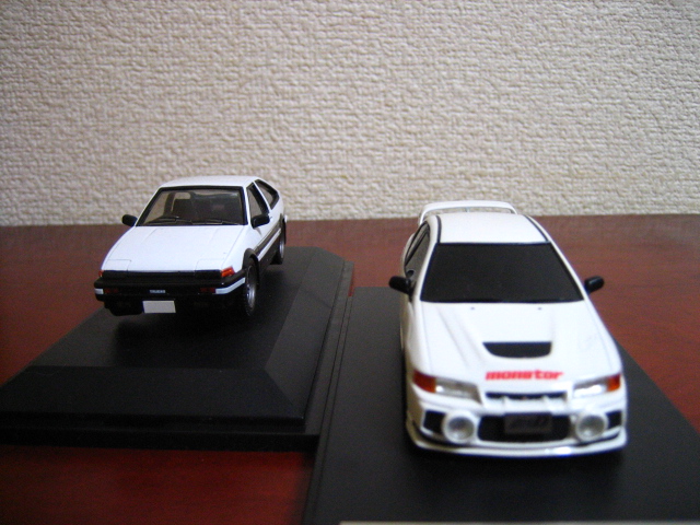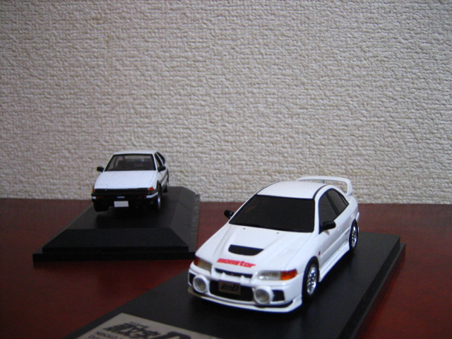 清次仕様のエボⅣ、昨今主流の1/64ではインターアライドMODELER’SからはVol.18(中里R32との2台セット)と、ホビージャパンから出ている。