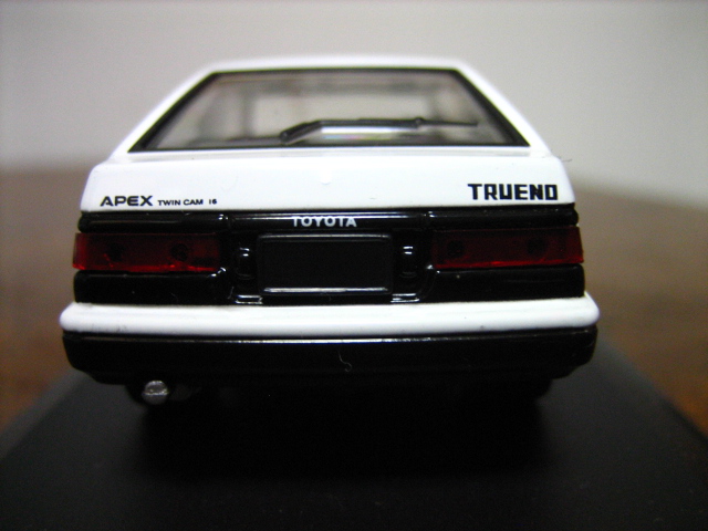 インターアライド・「MODELER’S」でも1/43でカーボンボンネット換装版拓海仕様トレノが2015年12月末にリリースされている。インターアライド版は別記事を参照されたいところだが、ヘッドライトが収まっている状態ではこのフジミ模型版が唯一である。つまり、「ブラインドアタック」を再現できるのはこれが唯一のモデルだったりもする。