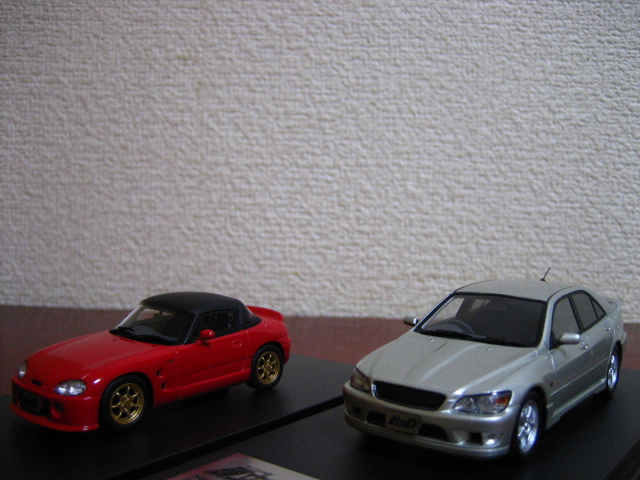 坂本のカプチーノを出したところで、延彦アルテッツァと合わせればインターアライド「MODELER’S」の1/64Series 2台セットの再現ができるため、急遽2台撮影。