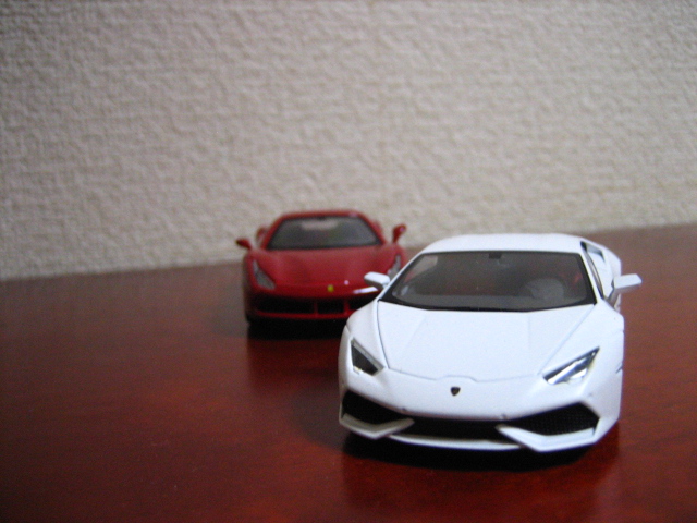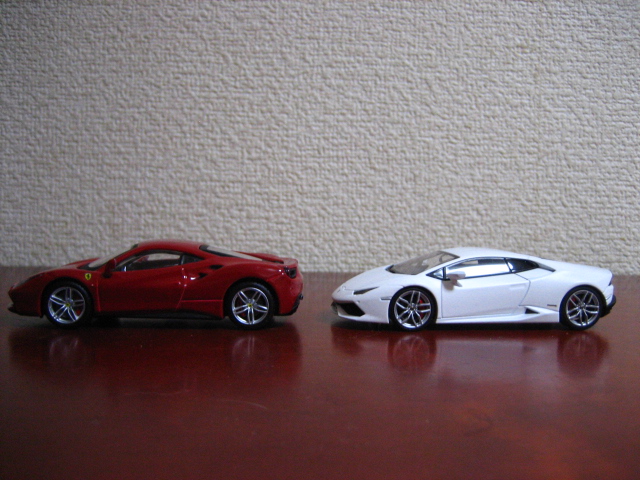 Autoartのは台座が斜めであるため、今回は両車とも台座を外しての撮影となった。