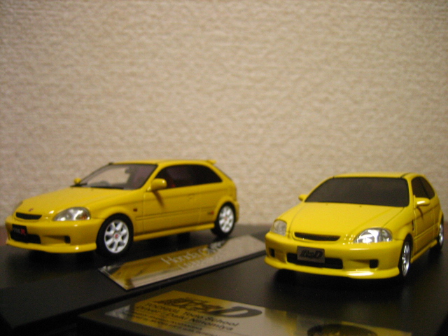 右・インターアライド『MODELER’S』 ホンダ・EK9 シビックタイプR 98Spec 二宮大輝仕様 サンライトイエロー