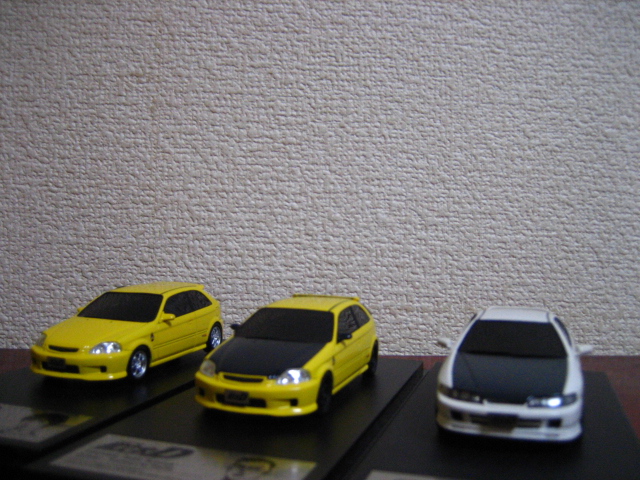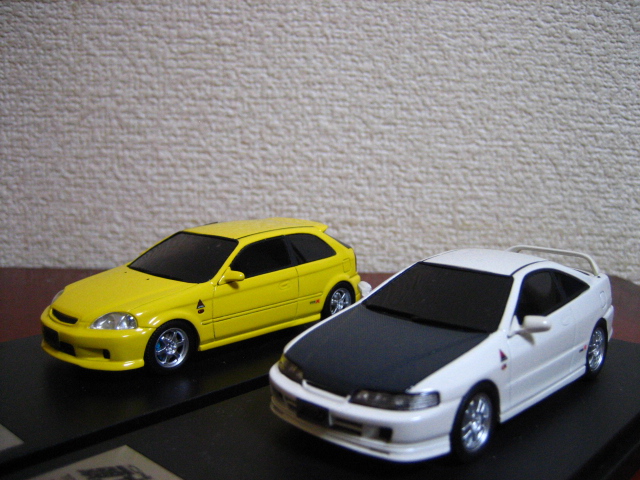 左・インターアライド「MODELER’S」 ホンダ・EK9 シビックタイプR 二宮大輝仕様 サンライトイエロー