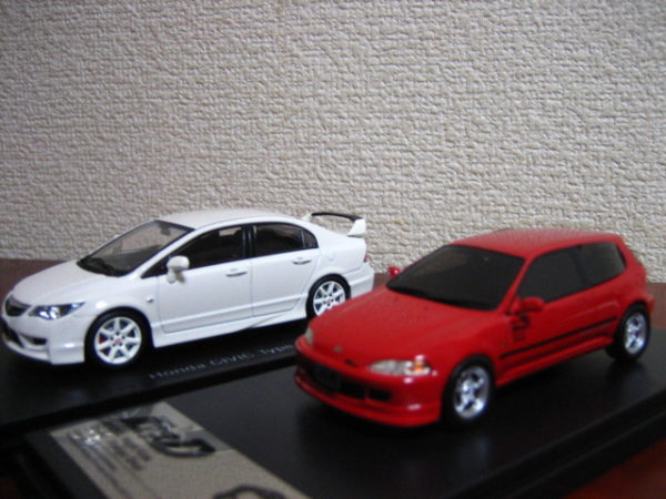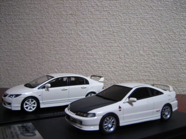1/43モデルはEBBRO、witsから出た。イメージカラーのチャンピオンシップホワイト(白)を筆頭に、スーパープラチナメタリック(シルバー)、クリスタルブラック・パール(黒)、プレミアムディープバイオレット・パール(紫)が出るほか、無限がカスタムしたTypeRR(赤)をリリースしていた。