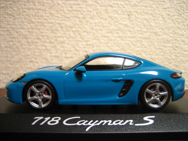 この718ケイマンSの1/43モデル…ドイツはミニチャンプスから出たもので、これのポルシェグッズとして特注されたものを今回入手したのだが、カラーはこのマイアミブルー1色だけであった(ポルシェオフィシャルHPでは718ケイマンSのカラーはこのマイアミブルーなのだが)。しかも、ミハイル仕様はカラーリングが未だ公表されていないので、願わくはカラーバリエーションを増やしていただければと思う。ケイマンGTSや標準のケイマンは結構カラーバリエーション豊富なのだが…。