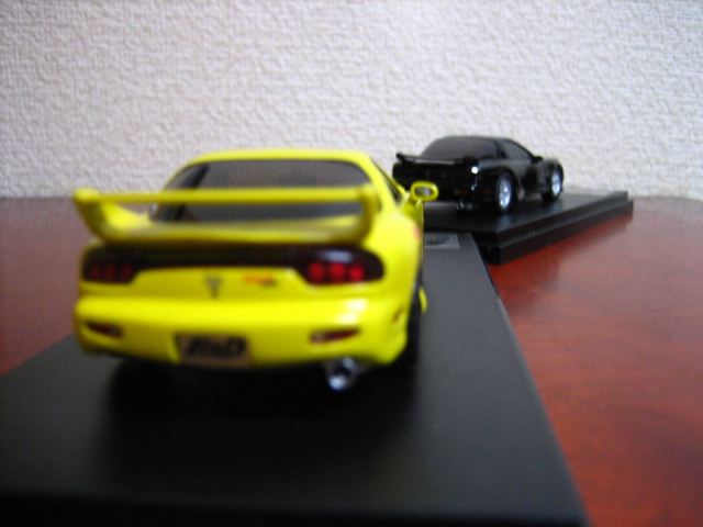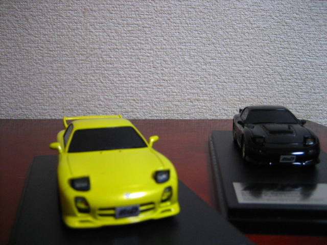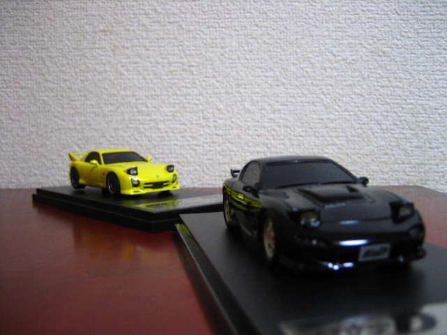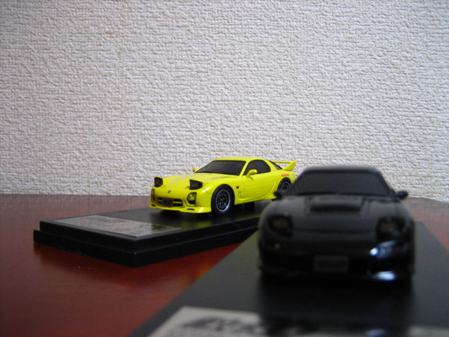 手前・インターアライド「MODELER’S」 マツダ・FD3S RX-7 高橋啓介仕様(中期型) コンペティションイエローマイカ