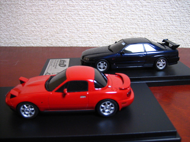 左・インターアライド「MODELER’S」 日産・ER34 スカイラインGT TURBO 川井淳郎仕様 ダークブルーパール