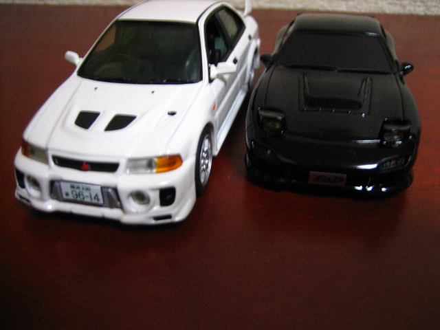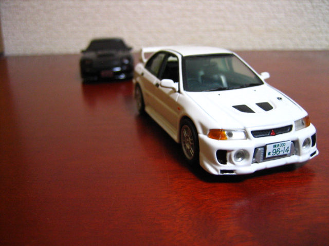 手前・VITESSE 三菱・CP9A ランサーエボリューションⅤ土坂上り搭乗車 スコーティアホワイト