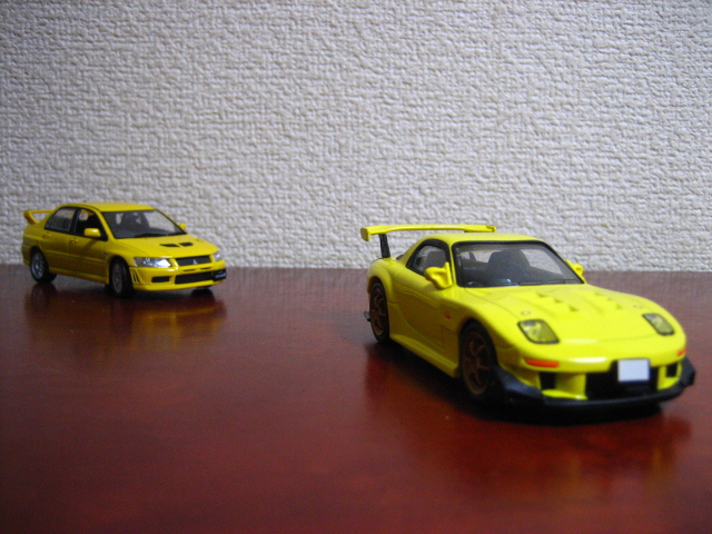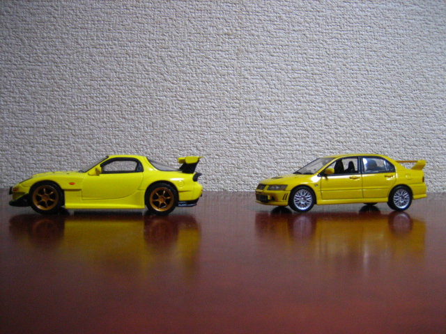 左奥・Autoart 三菱・CT9A ランサーエボリューションⅦ 小早川搭乗車 ダンデライオンイエロー