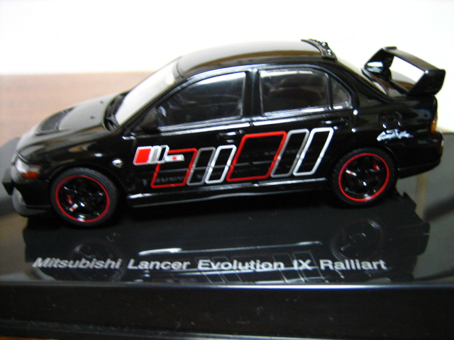 エボIXロードカーの1/43モデルは入手当時ixoやAutoartからリリースされたが、Autoartからリリースされたのは「RALLIART」のパーツや特徴あるステッカーをつけた仕様である。