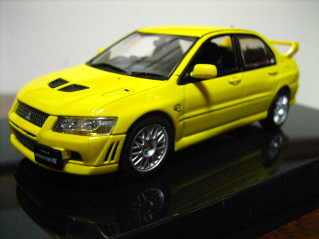 エボVIIは多くのミニカーメーカーがモデル化しており、エポック社M-TECH、ixo、そしてAutoartからリリースされた。また、自分が持つランエボの1/43モデルはこのVIIが最多で、ホワイト・イエロー・ブルー…Autoart、ブラック…M-TECHと所有している。