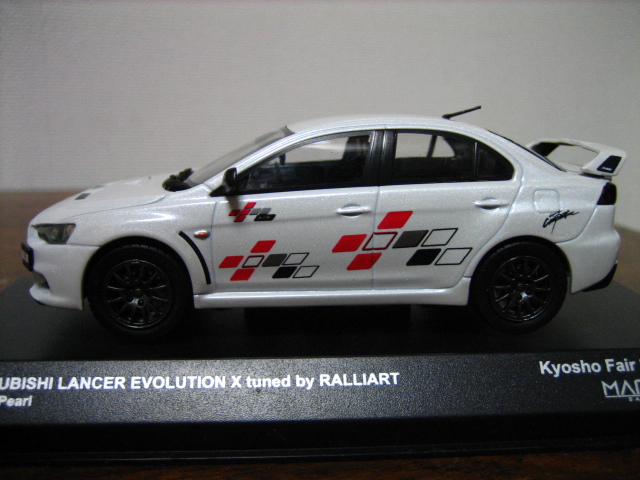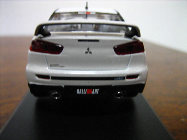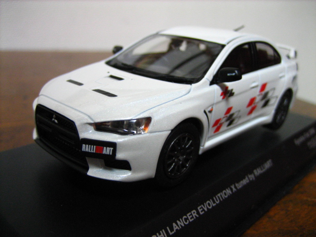 このモデル、実は特注品なのだ。2008年7月に名古屋の今はなき丸栄デパートで開催された京商主催のミニカーフェアで限定発売されたホワイトカラーのエボ10RALLIARTである。わざわざ夜行バスで名古屋まで行ったほどだった。