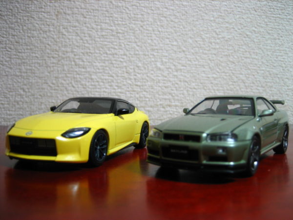 今回池谷仕様をイカズチイエローカラーとみなして入手した。公式カラーはまだ不明であるが、第一回目を見る限り「ブラックルーフ」ではなかったため、これで代用とする。また、星野光弘のRZ34もカラーは白系か黄色系かと思われ、そのアッパーバージョンであるnismoではないかとみている。まだ未入手のためひとまずバトル再現はこのカラーで行くが、nismoもしくはホワイトカラーを入手次第それを星野搭乗車として差し替えを行う予定。